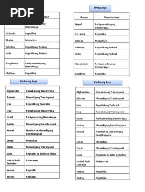 Mayroong 28 estado sa India na may sariling mga nahalal na pamahalaan. 44Ang Parliyamentong Demokrasya ay anyo ng pamahalaang umiiral sa Timog at Kanlurang Asya na kinabibilangan ng bansang _____. F Nagpatuloy ang kaguluhan sa Iraq.