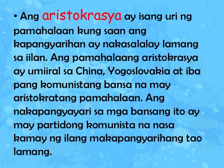 Aristokrasya Aristocracy